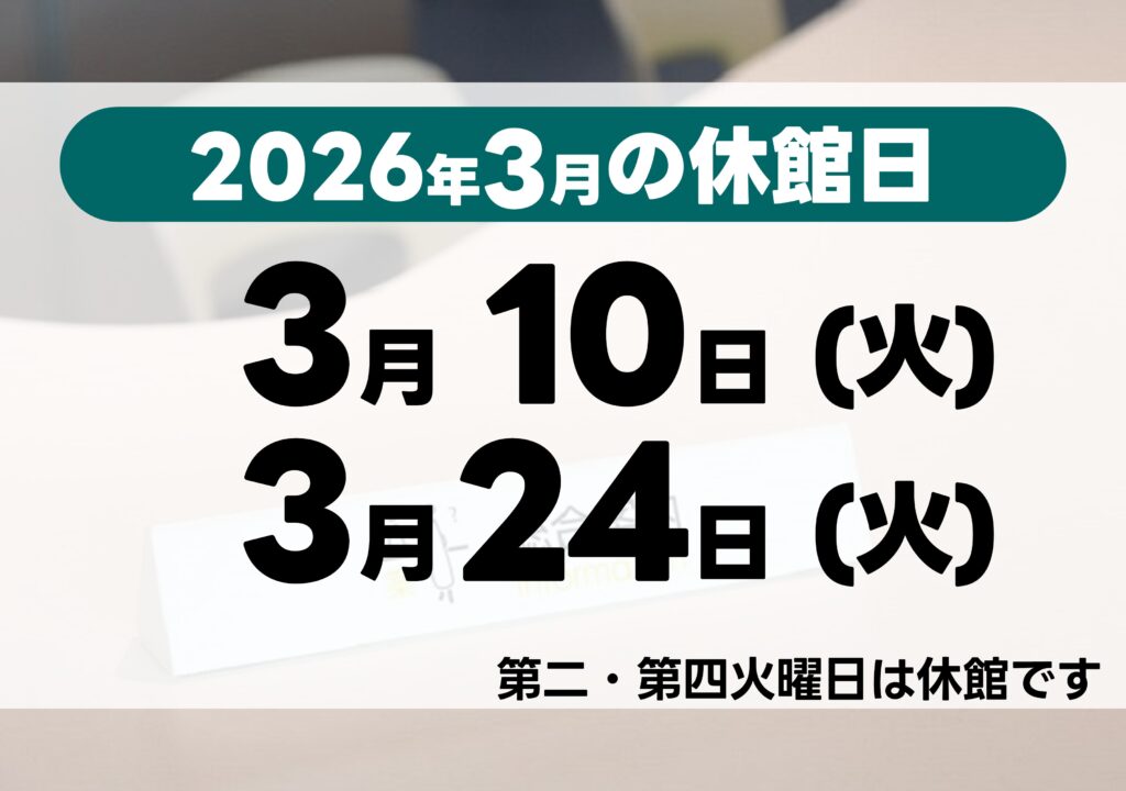 - 【2月24日】休館日2月23日(火)が祝日のため24日が休館日となります