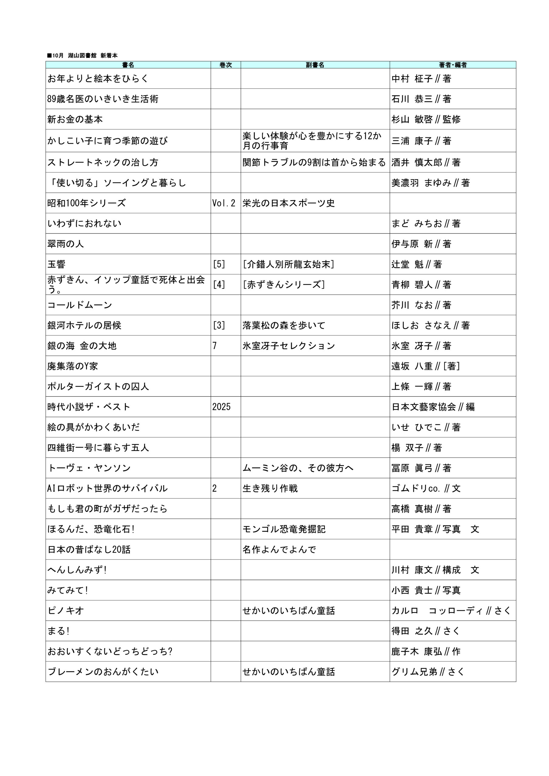 🌼PDF版はこちら:湖山図書館新着図書2025年10月