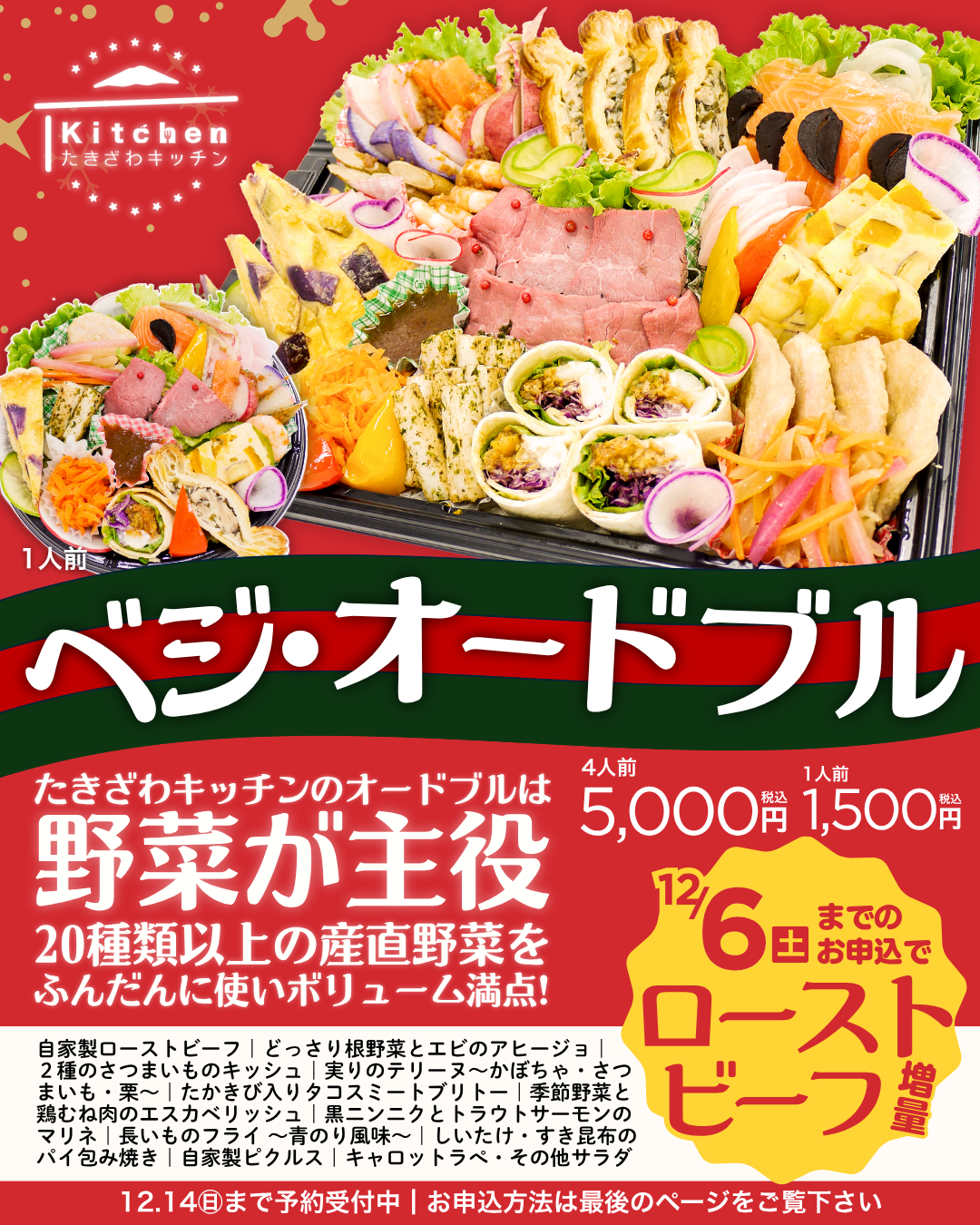 たきざわキッチンオリジナル ベジ・オードブルご予約受付を開始いたしました!