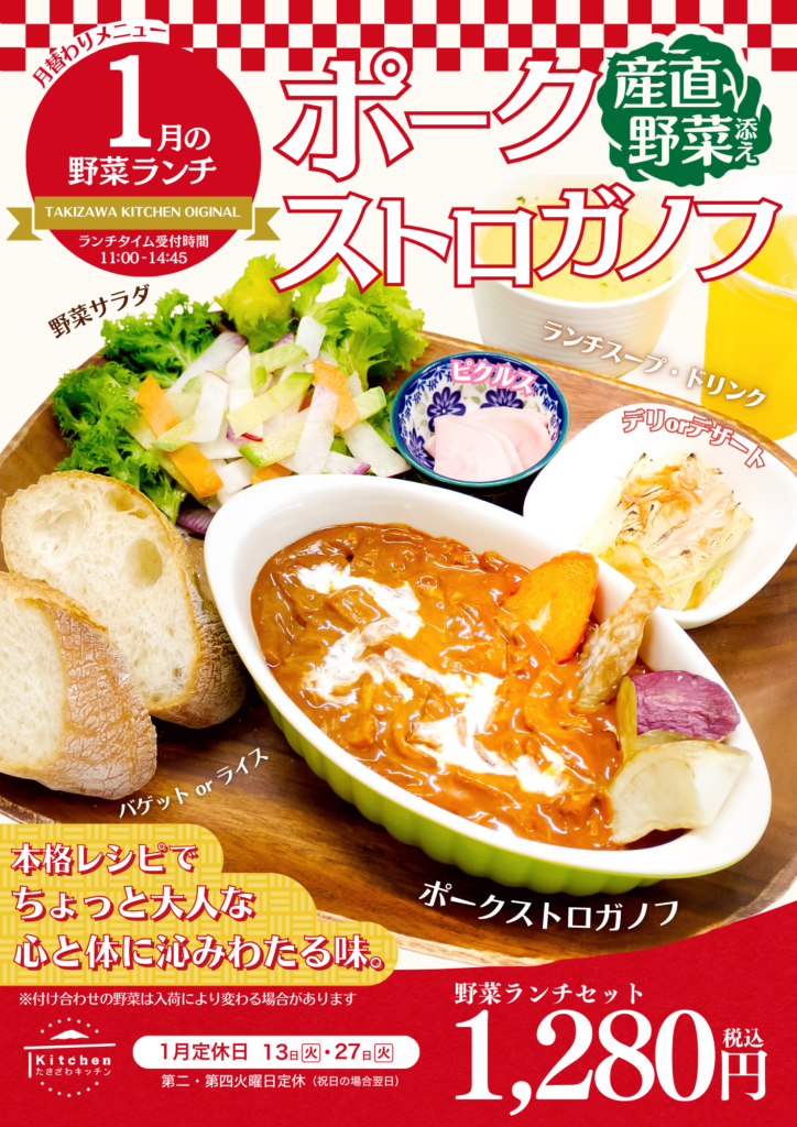 1月の野菜ランチは、『ポークストロガノフ~産直野菜添え~』です!