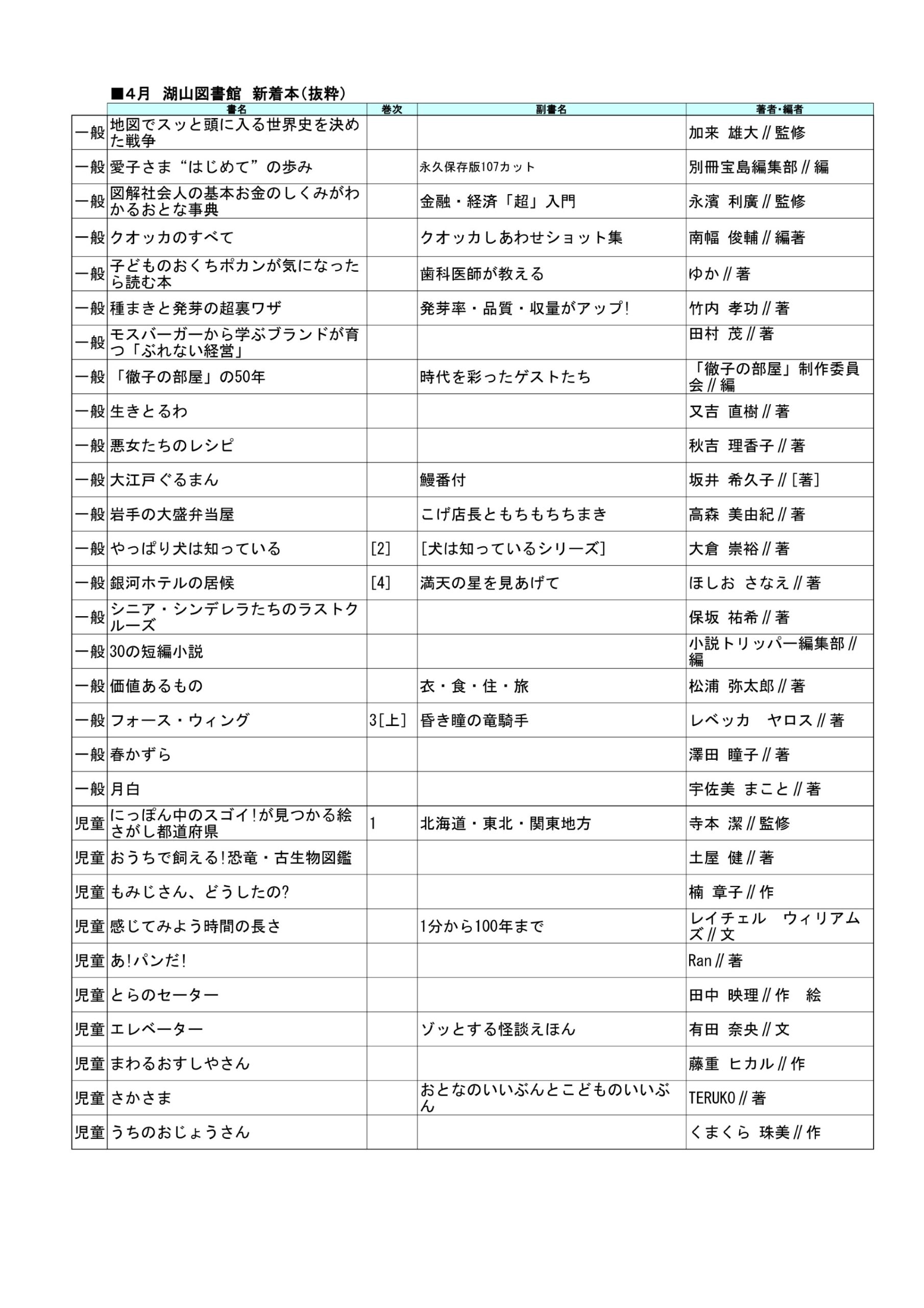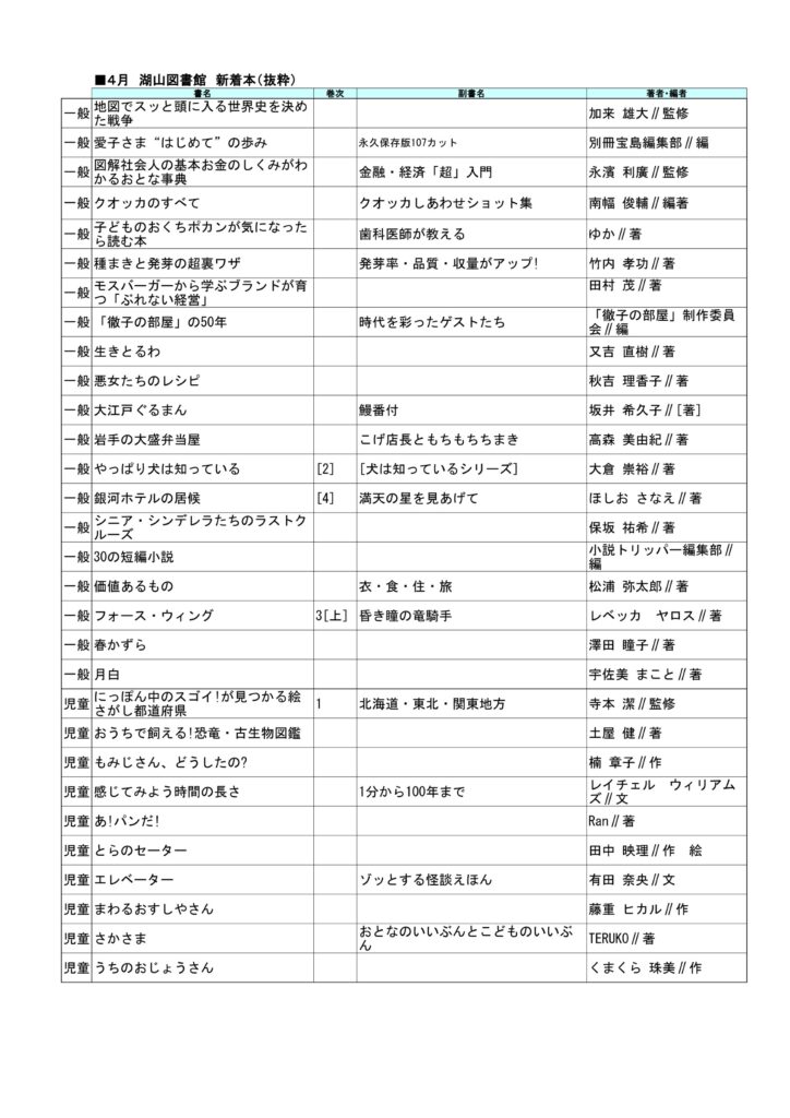 PDF版はこちら:湖山図書館新着図書2026年4月