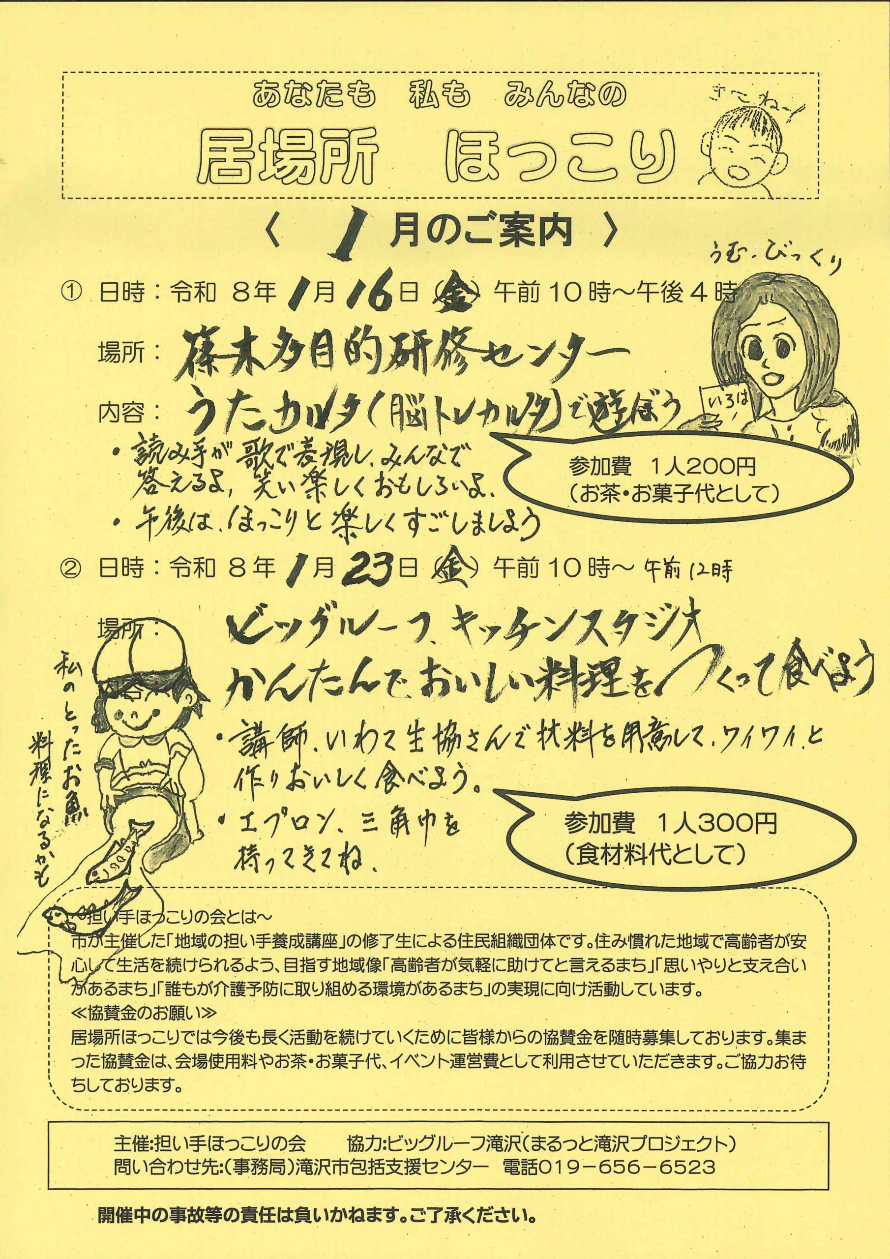 居場所づくりや生活支援に取り組む住民ボランティア組織「担い手ほっこりの会」による、居場所ほっこりが行われます。