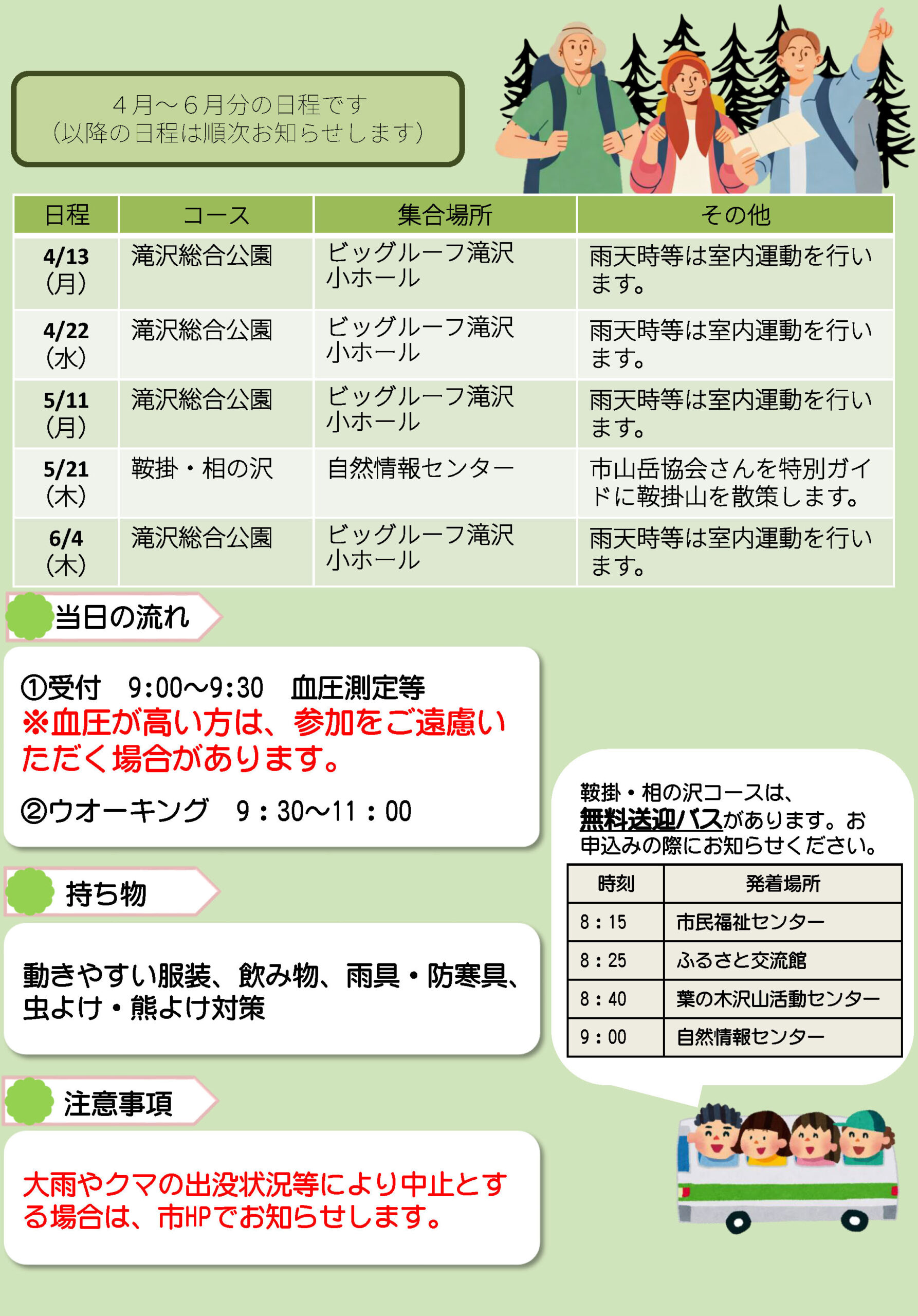 大雨やクマの出没状況等により中止とする場合は、市HPでお知らせします。