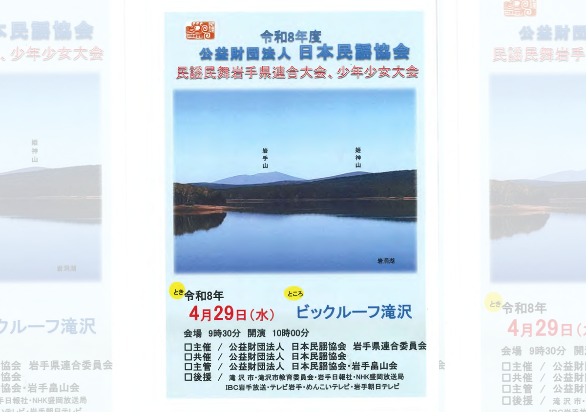 令和8年度公益財団法人日本民謡協会 – 民謡民舞岩手県連合大会、少年少女大会