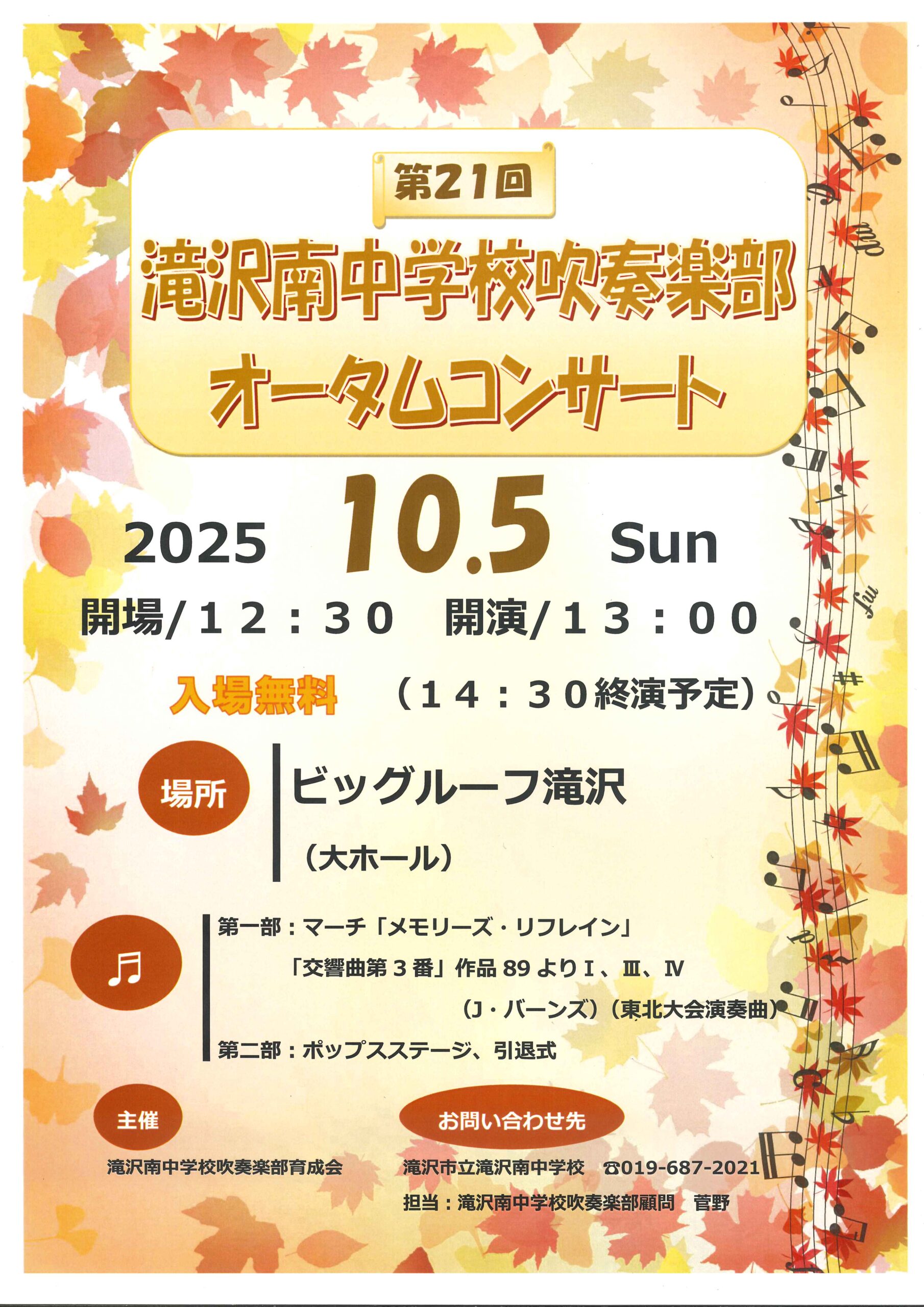主催 滝沢南中学校吹奏楽部育成会
