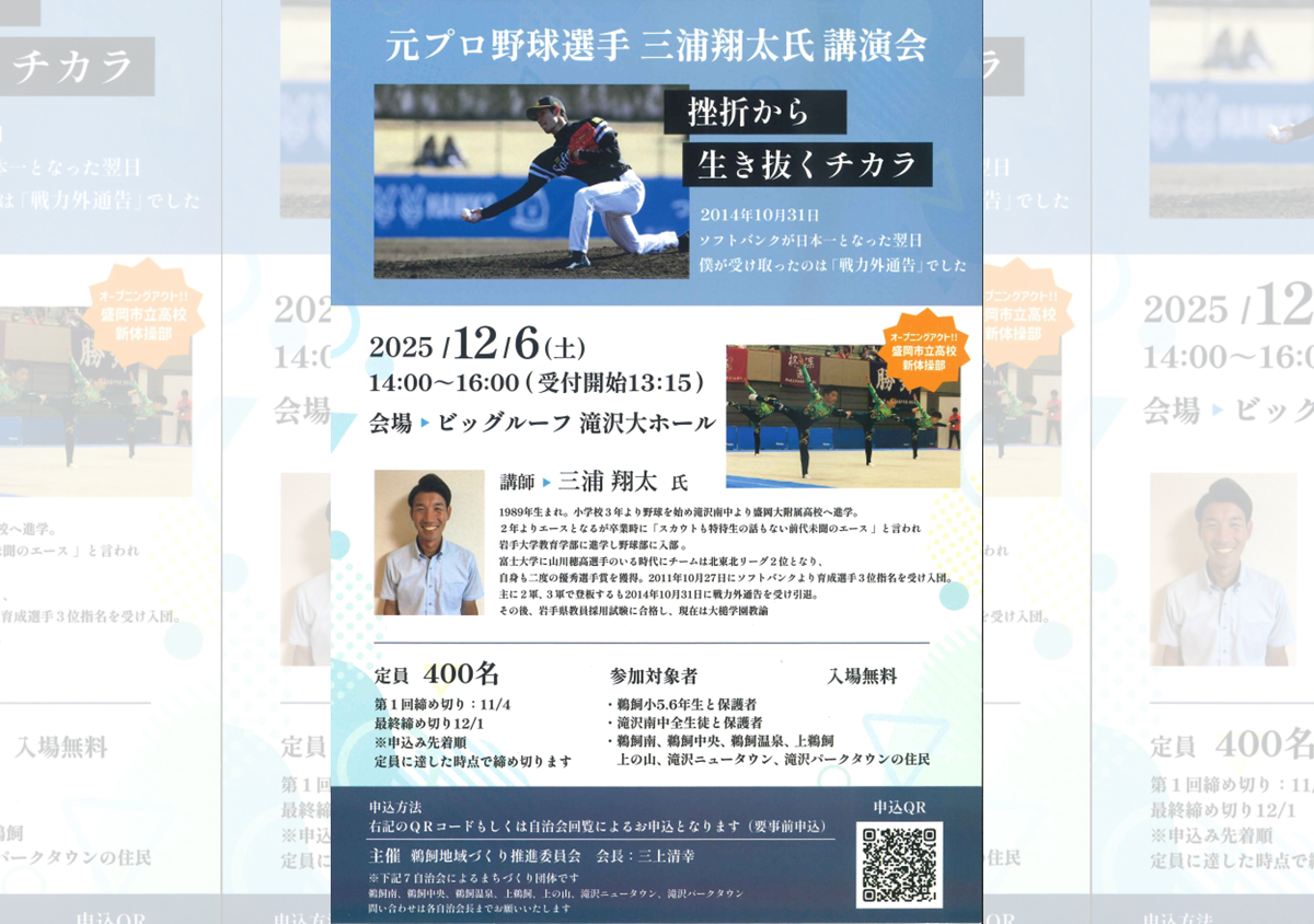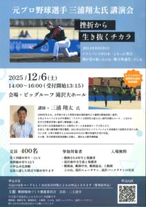 元プロ野球選手 三浦翔太氏 講演会「挫折から生き抜くチカラ」